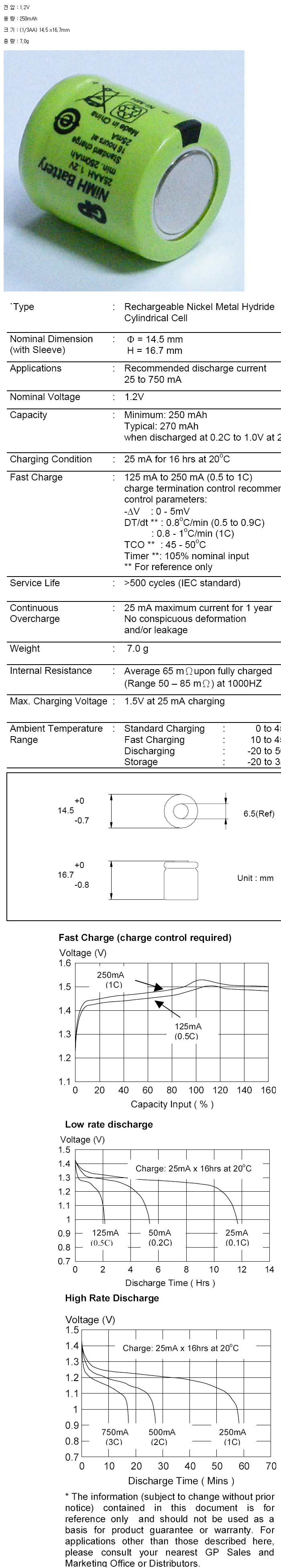GP25AAH(1/3AA 1.2V 250mAh):¼öÀÔÁß´Ü,ǰÀý!!