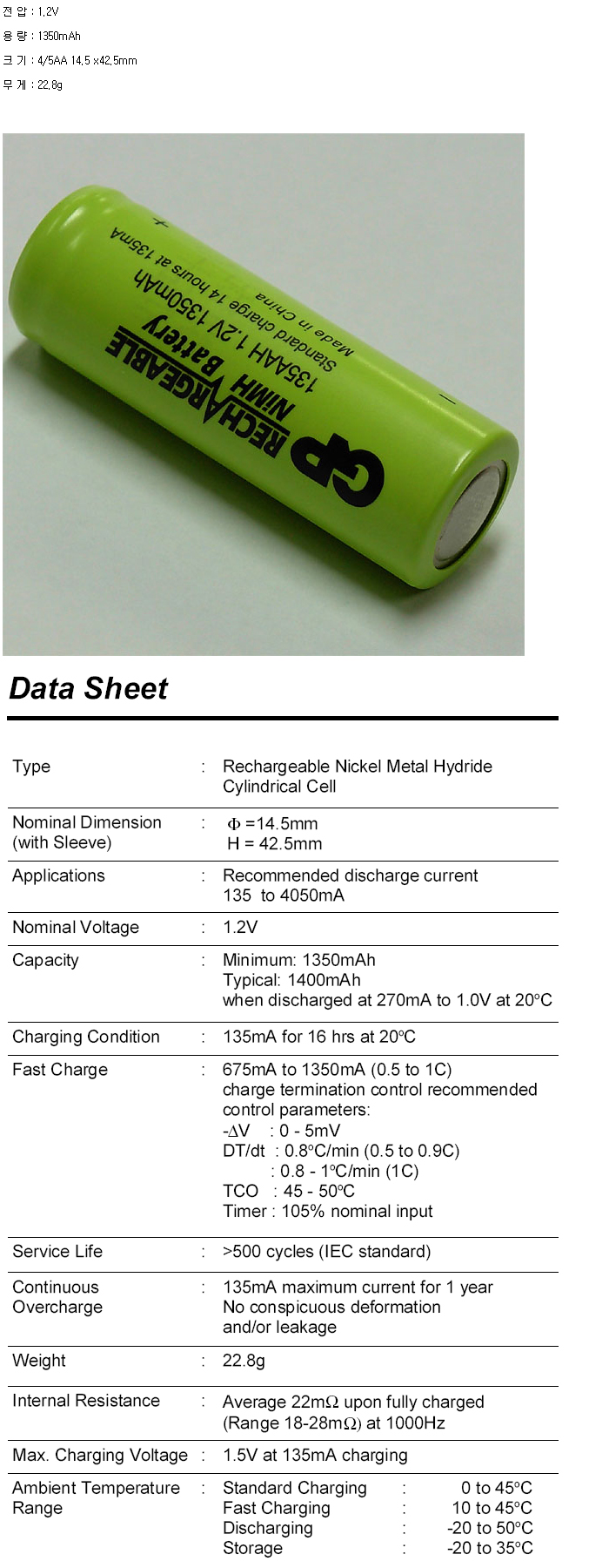 GP135AAH(4/5AA 1.2V 1350mAh):¼öÀÔÁß´Ü,ǰÀý!!