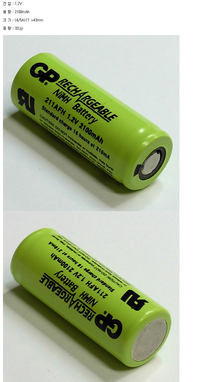 GP211AFH(4/5A 1.2V 2100mAh)=>(GP/FDK ¼±Åð¡´É)
