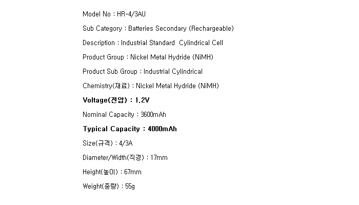 HR-4/3AU(4/3A 1.2V 4000mAh)