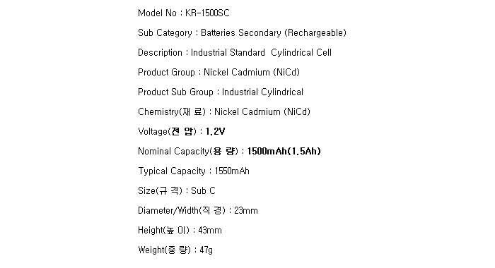 KR-1500SC(SC 1.2V 1500mAh)