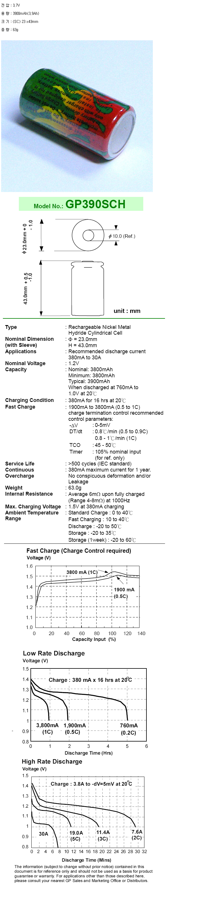 GP390SCH(SC 1.2V 3900mAh):¼öÀÔÁß´Ü,ǰÀý!!