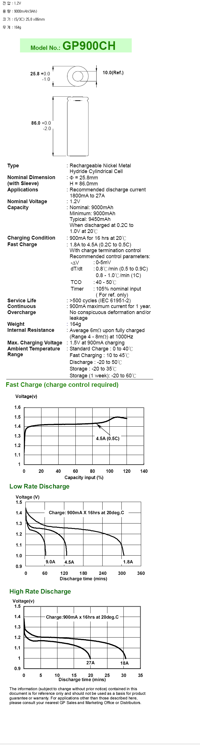 GP900CH(5/3C 1.2V 9000mAh):¼öÀÔÁß´Ü,ǰÀý!!