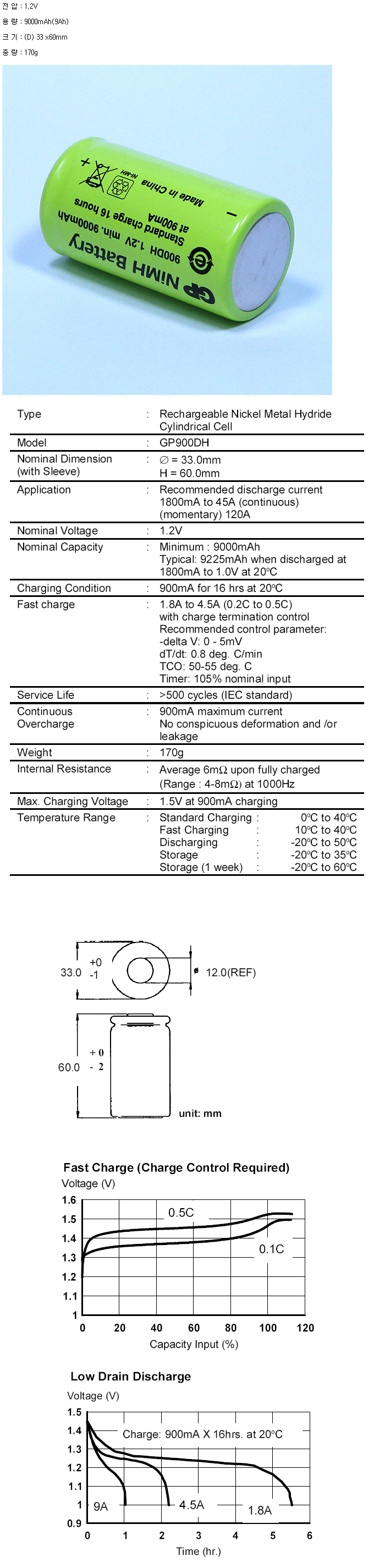 GP900DH(D 1.2V 9000mAh):¼öÀÔÁß´Ü,ǰÀý!!