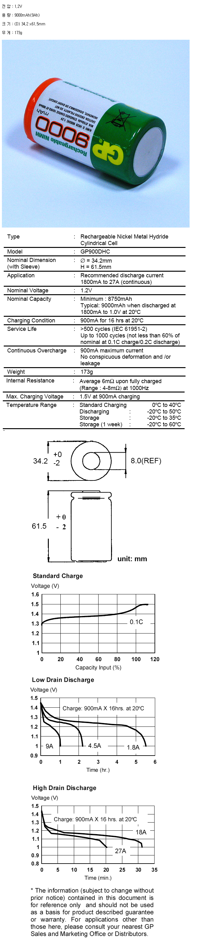 GP900DHC-HR20(D 1.2V 9000mAh):¼öÀÔÁß´Ü,ǰÀý!!