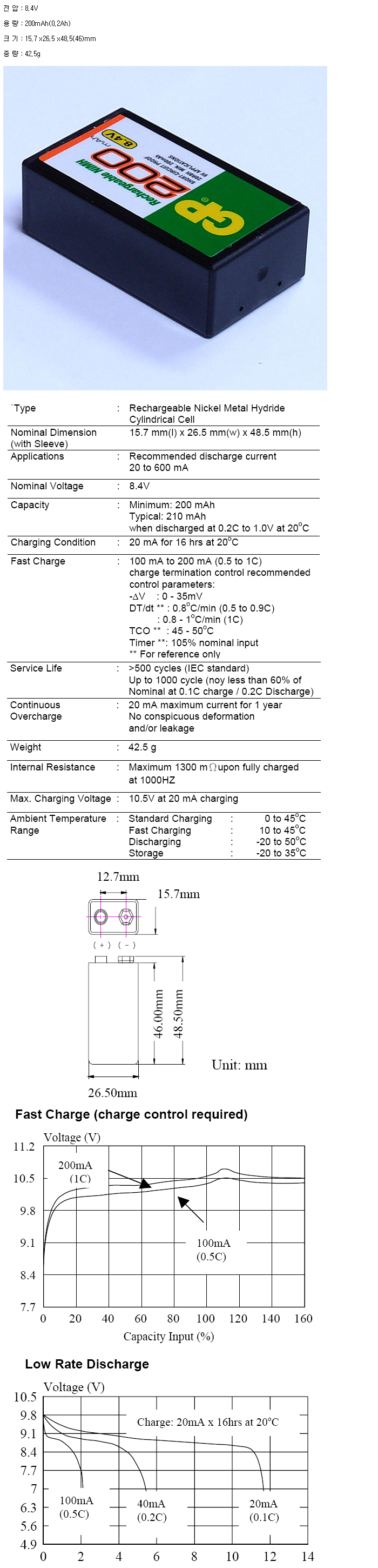 GP20R8H(8.4V 200mAh):¼öÀÔÁß´Ü,ǰÀý!!