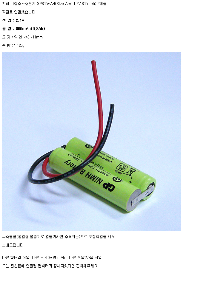 GP2N80AAAH-R-A(2.4V 800mAh):¼öÀÔÁß´Ü,ǰÀý!!