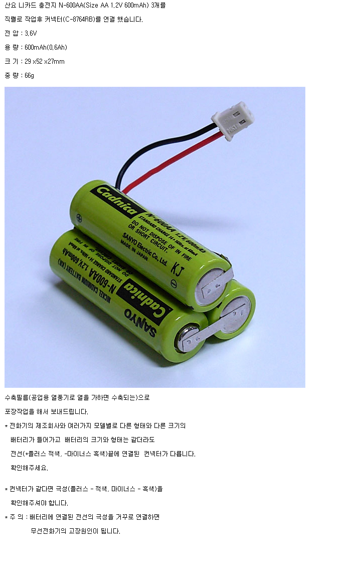 3N600AA-T(3.6V 600mAh)C5264RB