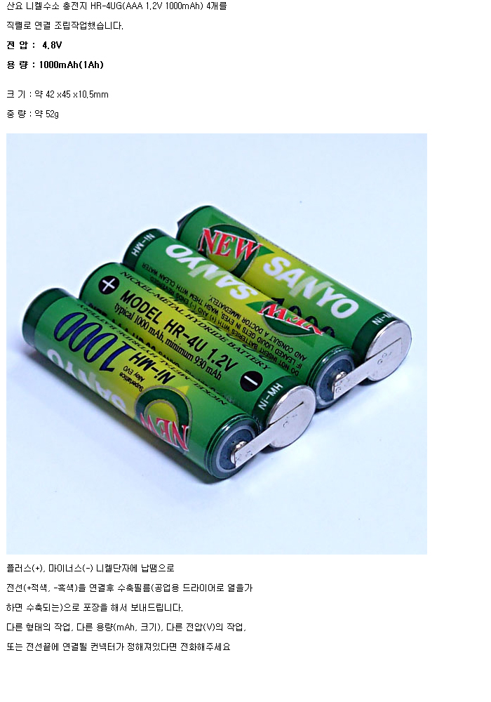 Sanyo 4HR4UG-R(4.8V 1000mAh)