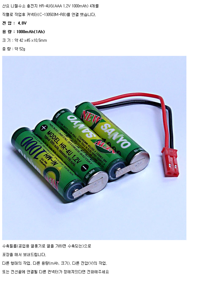Sanyo 4HR4UG-R(4.8V 1000mAh)C130503M-RB
