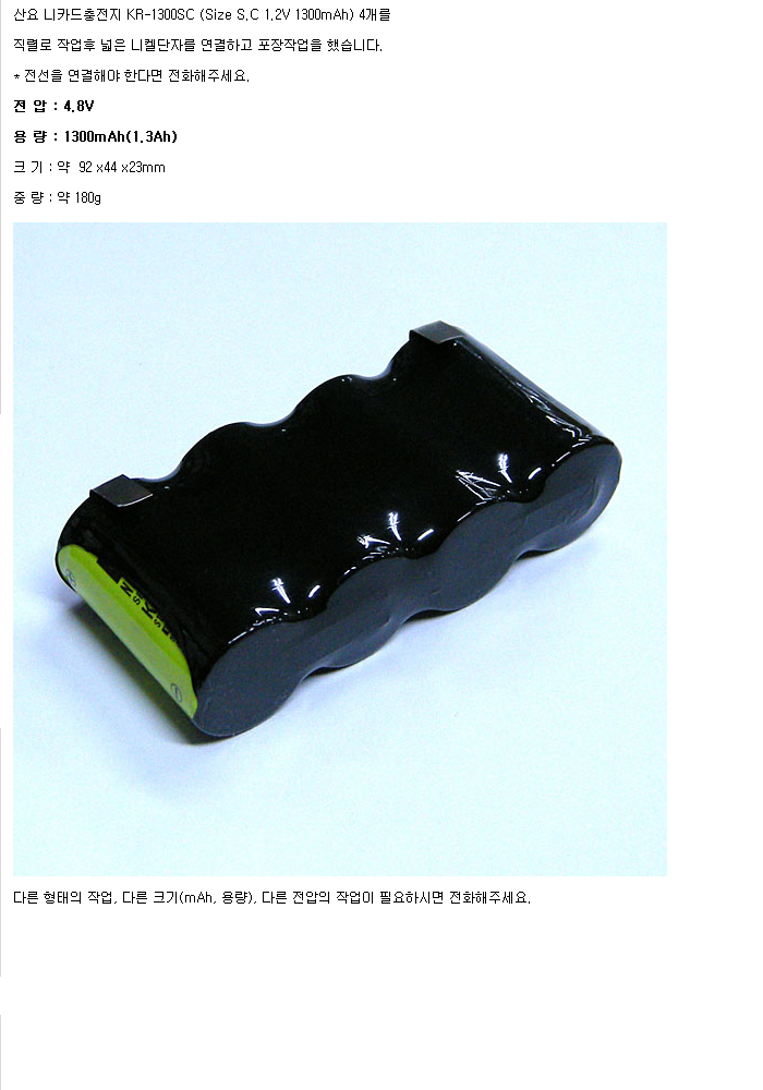Sanyo 4KR1300SC-R-W2PF(4.8V 1300mAh)