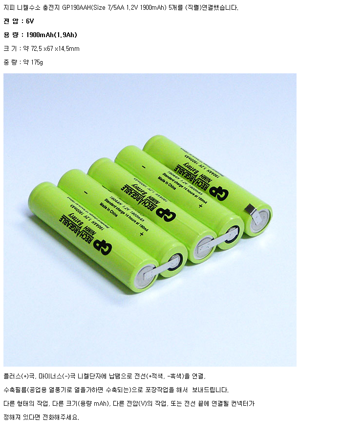 GP5N190AAH-R(6V 1900mAh):¼öÀÔÁß´Ü,ǰÀý!!