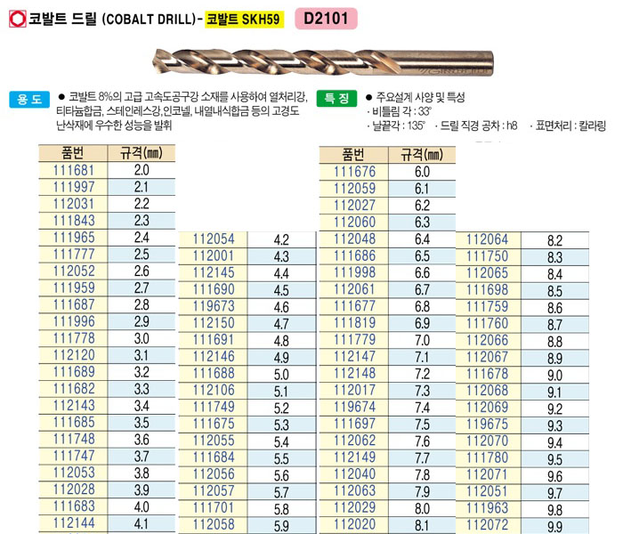 [YG]ÄÚ¹ßÆ® µå¸±(COBALT DRILL)7.6mm~8.3mm(10°³¼ÂÆ®)