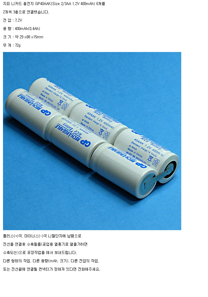 GP6N40AAK-3F(7.2V 400mAh):¼öÀÔÁß´Ü,ǰÀý!!