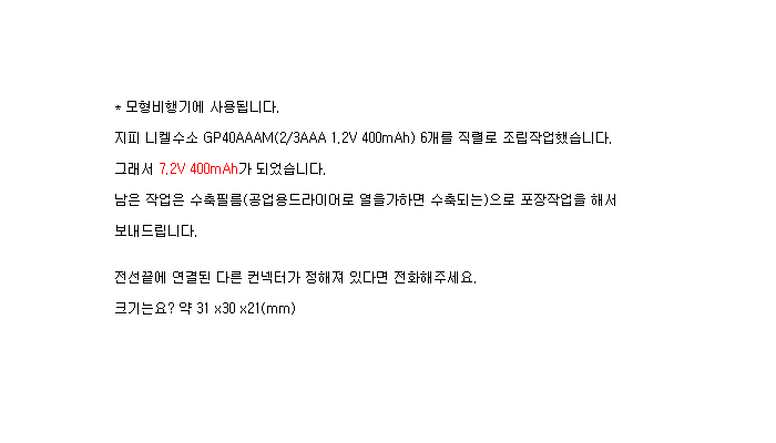GP6N40AAAM-2R(7.2V 400mAh)JST:¼öÀÔÁß´Ü,ǰÀý!!