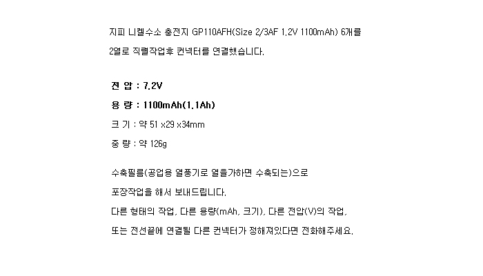GP6N110AFH-2R(7.2V 1100mAh)C1353:¼öÀÔÁß´Ü,ǰÀý!!
