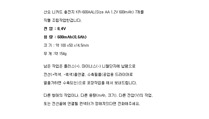 7KR600AAL-R(8.4V 600mAh)