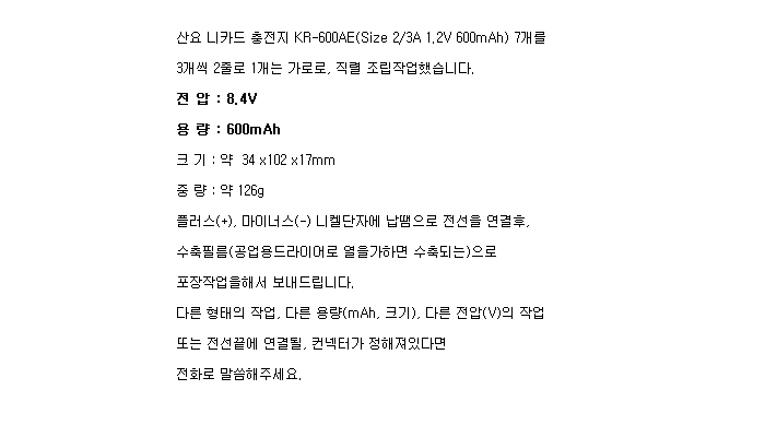7KR600AE-3S1W(8.4V 600mAh)