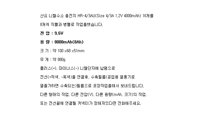 SA16HR4/3AU-6R2B-8S2P(9.6V 8000mAh)