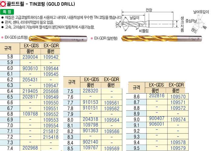 [OSG]°ñµå µå¸±-TINÄÚµù(GOLD DRILL)EX-GDR 6.6~7.5