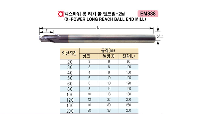 [¿ÍÀÌÁö¿ø] ¿¢½ºÆÄ¿ö ·Õ ¸®Ä¡ º¼¿£µå¹Ð-2³¯ (X-POWER REACH BALL END MILL) 2.0 ~ 20.0
