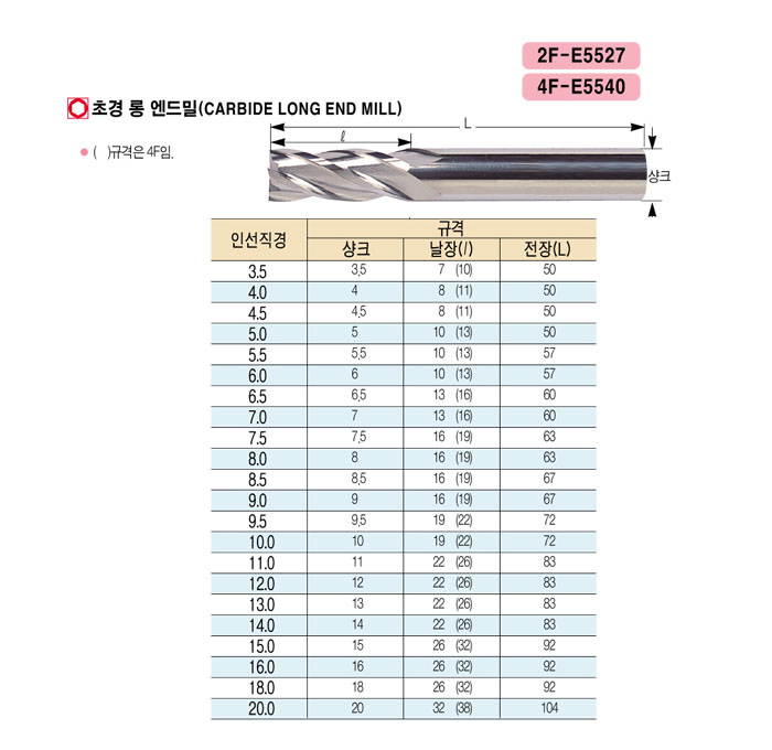 [¿ÍÀÌÁö¿ø] ÃÊ°æ ·Õ ¿£µå¹Ð (CARBIDE LONG END MIL) 12.0 2F ~ 16.0 4F