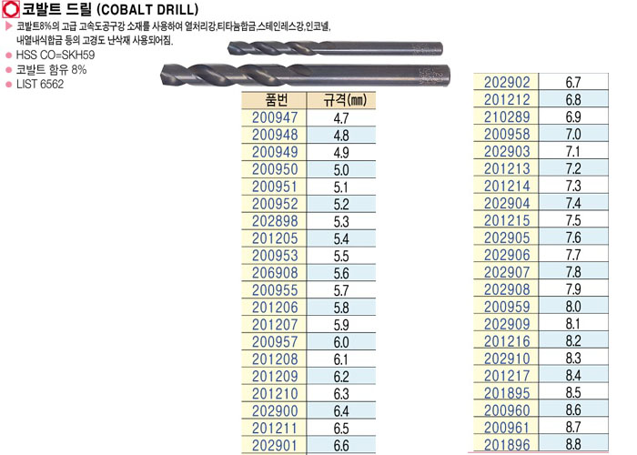 [NACHI]ÄÚ¹ßÆ® µå¸±(COBALT DRILL)5.7mm~6.6mm