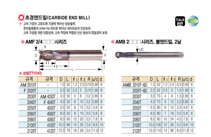 [´ë±¸ÅØ] ÃÊ°æ ¿£µå¹Ð(CARBIDE END MILL) AMF 2010T ~ AMF 2120T