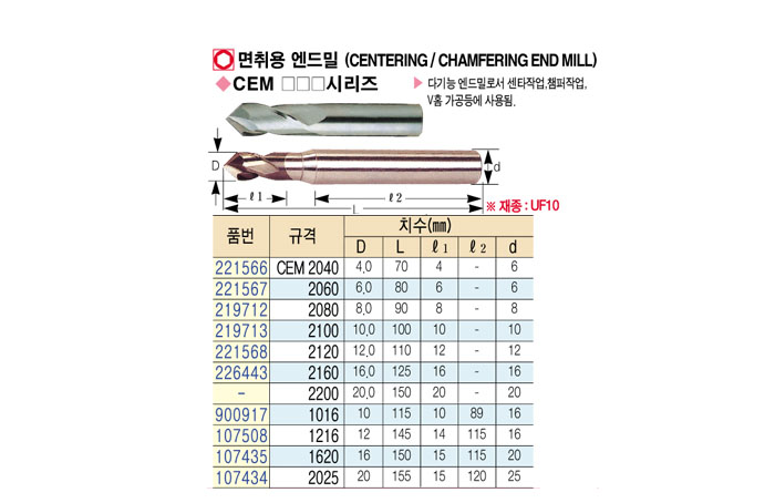 [´ë±¸ÅØ] ¸éÃë¿ë ¿£µå¹Ð (CENTERING/CHAMFERING END MILL) CEM 2200 ~ CEM 2025