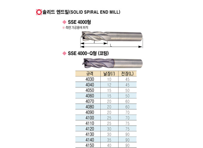 [Çѱ¹¾ß±Ý] ¼Ö¸®µå ¿£µå¹Ð (SOLID SPIRAL END MILL) 4030 ÀÏ¹Ý ~ 4070 ÄÚÆÃ
