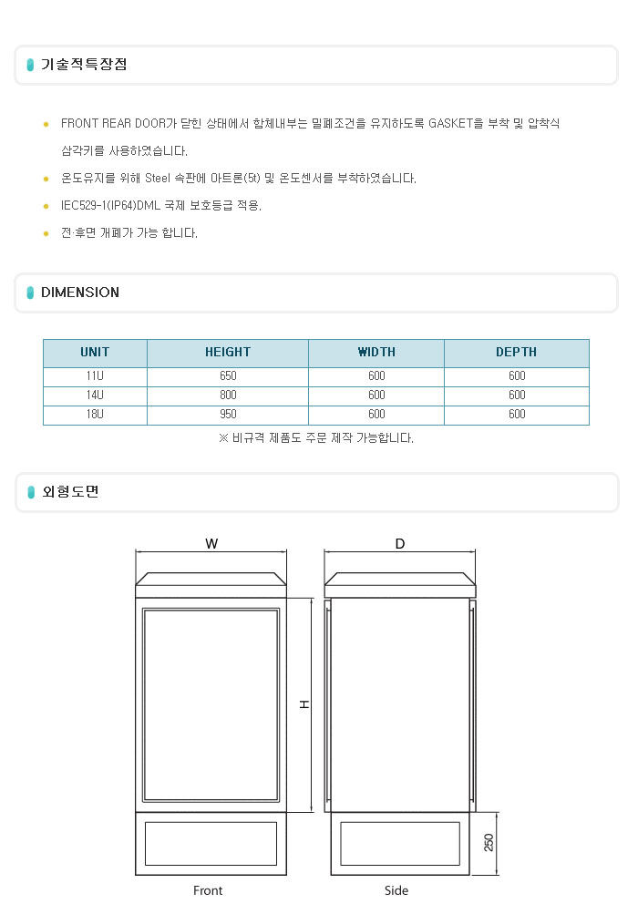 OUT DOOR RACK SGOD-2000 (ÁÖ¹®Á¦ÀÛǰ:³³±â 1ÁÖÀÏ ¼Ò¿ä)-11U(H650)/14U(H800)/18U(H950)x(W)600x(D)600mm 3Á¾ ¼±Åð¡´É