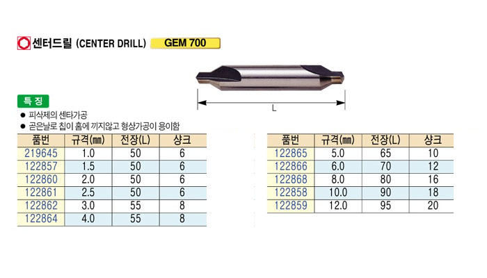 [SANGSIN]¼¾Å͵帱(CENTER DRILL)5.0mm~12.0mm