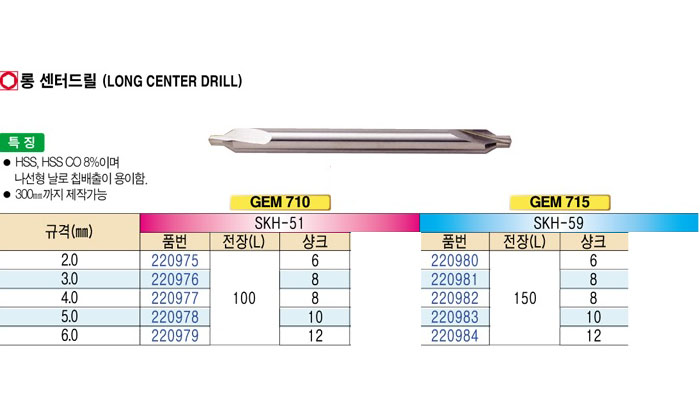 [SANGSIN]·Õ ¼¾Å͵帱(LONG CENTER DRILL)SKH-51 2.0mm~6.0mm