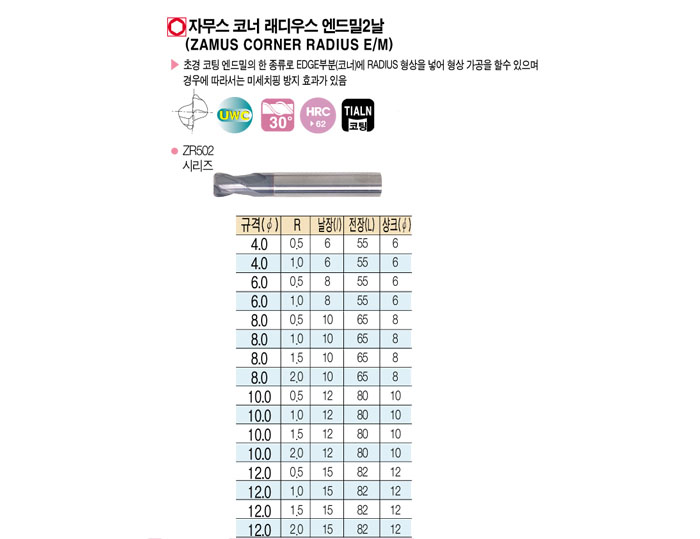 [ÇϳªÅø½º] ÀÚ¹«½º ÄÚ³Ê ·¡µð¿ì½º ¿£µå¹Ð2³¯ (ZAMUS CORNER RADIUS E/M) ±Ô°Ý10.0 R0.5 ~ ±Ô°Ý12.0 R2.0