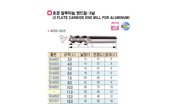 [ÇϳªÅø½º] ÃÊ°æ ¾Ë·ç¹Ì´½ ¿£µå¹Ð-3³¯ (3 FLUTE CARBIDE END MILL FOR ALUMINUM) 3.0 ~ 16.0