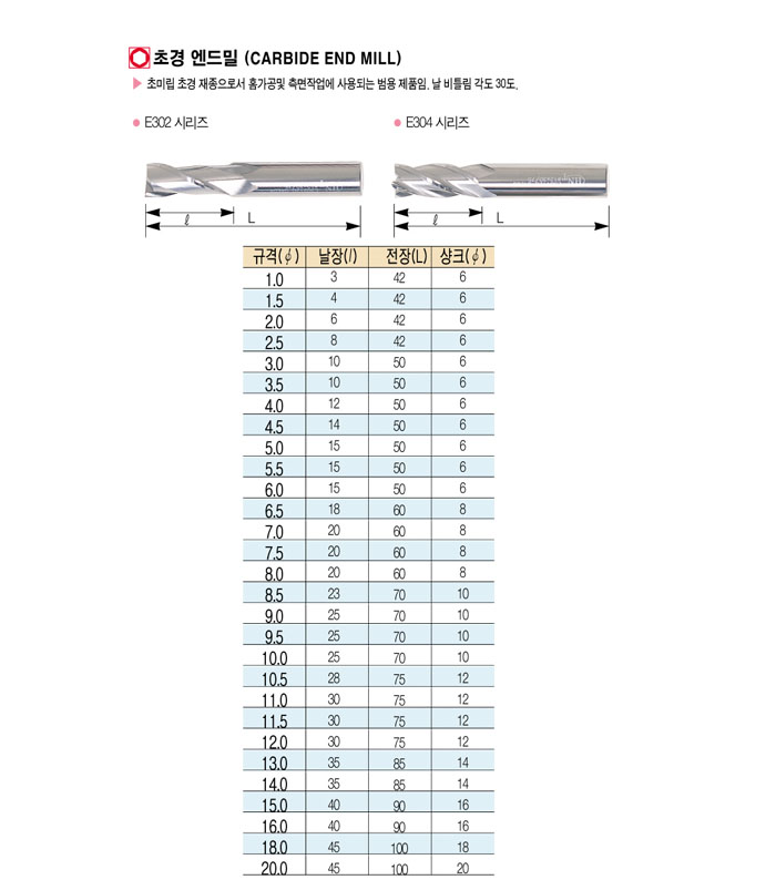 [ÇϳªÅø½º] ÃÊ°æ ¿£µå¹Ð (CARBIDE END MILL) 6.5 2F ~ 8.5 4F