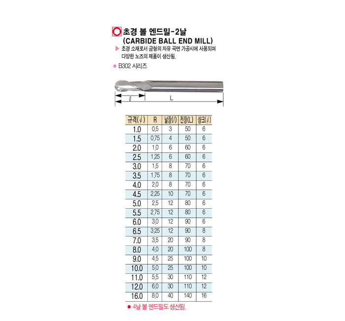 [ÇϳªÅø½º] ÃÊ°æ º¼ ¿£µå¹Ð-2³¯ (CARBIDE BALL END MILL) 1.0 ~ 5.5