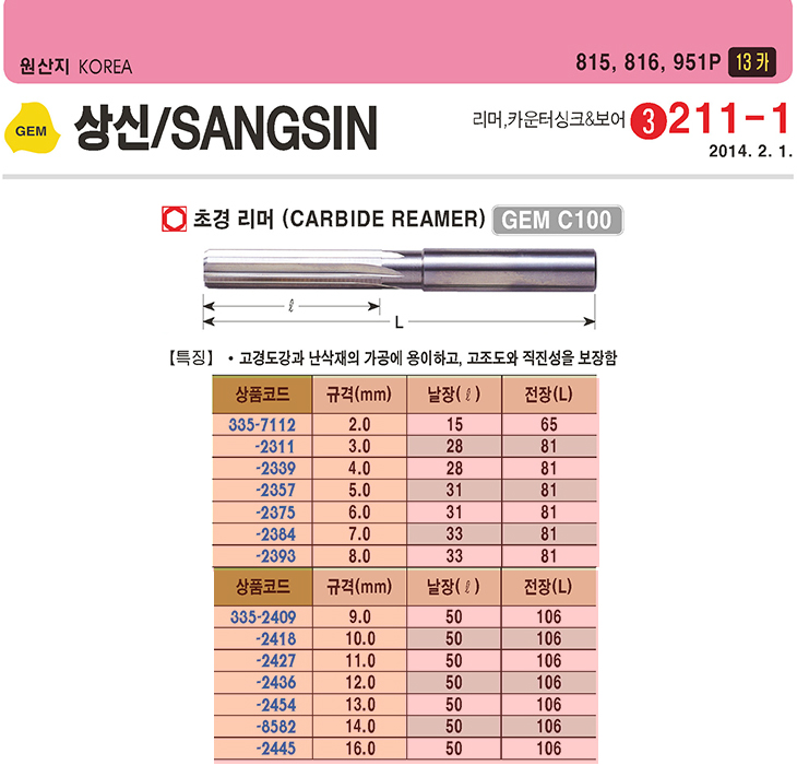 [»ó½ÅÁ¤¹Ð] ÇÚµå Ãʰ渮¸Ó(»çÀÌÁî ¼±Åð¡´É : 9.0~16.0mm)(CARBIDE REAMER)