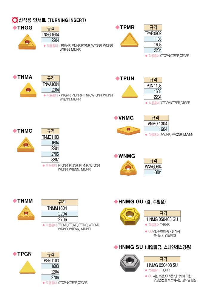 [´ë±¸ÅØ] ¼±»è¿ë Àμ­Æ® (TURNING INSERT) TPUN 1103 Ãʰæ ~ TPUN 2204 ÄÚÆÃ