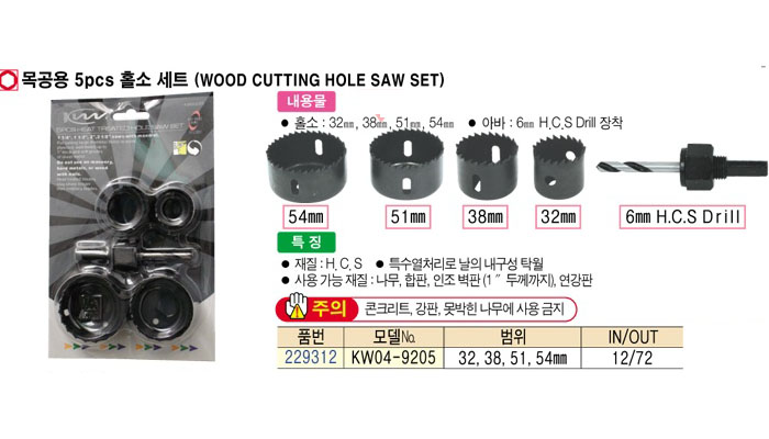 [KW]¸ñ°ø¿ë 5Pcs Ȧ¼Ò¼¼Æ®(WOOD COTTING HOLE SAW SET)KW04-9205