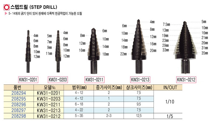 [KW]½ºÅܵ帱(STEP DRILL)KW31-0213~KW31-0212