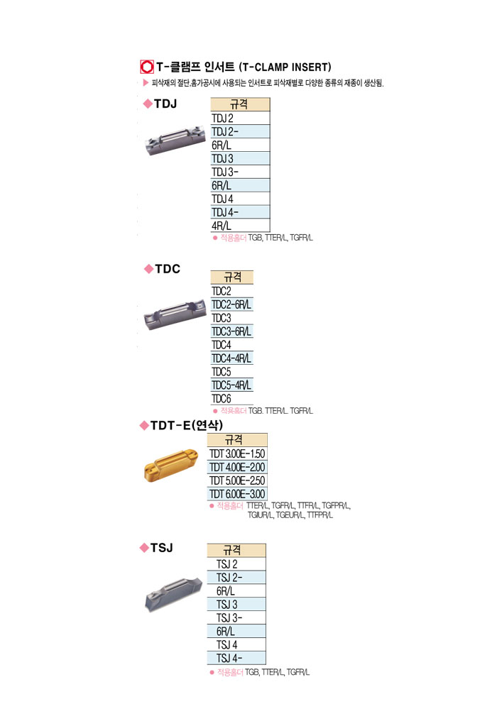 [´ë±¸ÅØ] T-Ŭ·¥ÇÁ Àμ­Æ® (T-CLAMP INSERT) TDJ 2 K10 ~ TDJ 4 ÄÚÆÃ