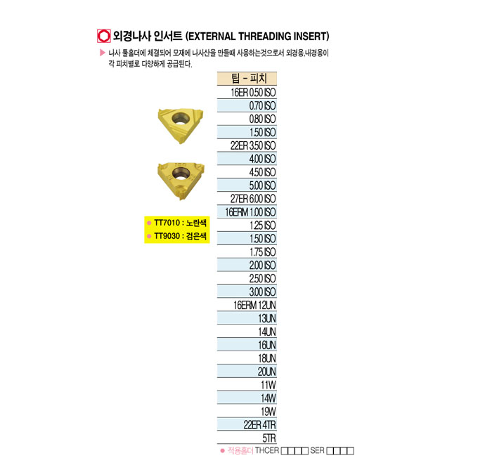 [´ë±¸ÅØ] ¿Ü°æ³ª»ç Àμ­Æ® (EXTERNAL THREADING INSERT) 16ERM 1.25 ISO TT7010 ~ 16ERM 2.50 ISO TT9030