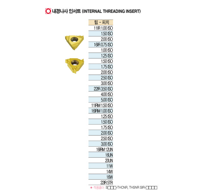 [´ë±¸ÅØ] ³»°æ°æ³ª»ç Àμ­Æ® (INTERBAL THREADING INSERT) 11IR 1.00 ISO TT7010 ~ 16IR 1.00 ISO TT9030