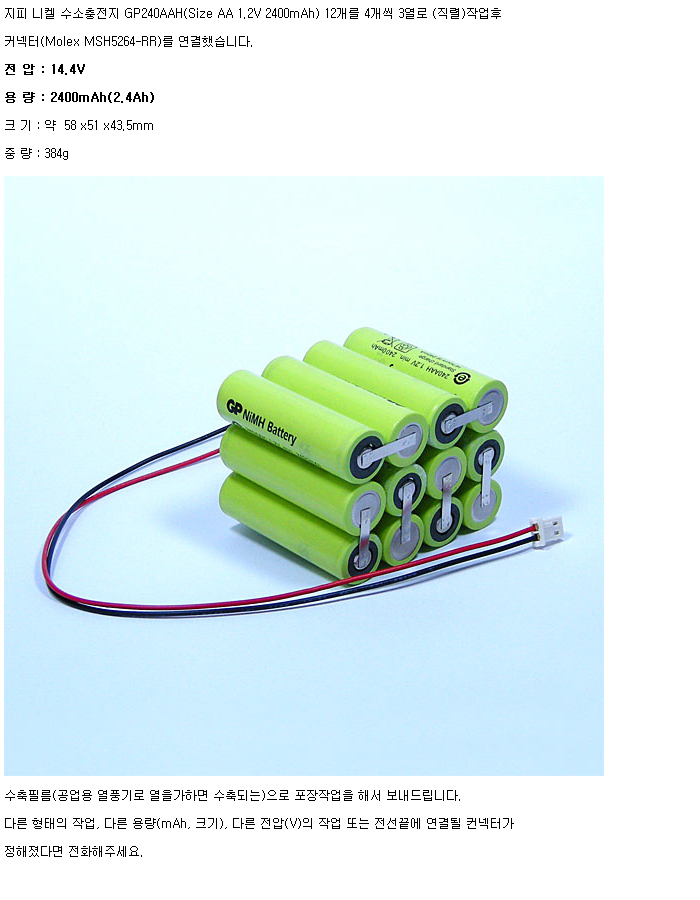 GP12N240AAH-3R-12S1P(14.4V 2400mAh)C5264RR:¼öÀÔÁß´Ü,ǰÀý!!