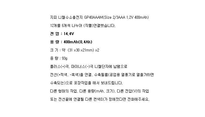 GP12N40AAAM-EH2R(14.4V 400mAh)C5264RB:¼öÀÔÁß´Ü,ǰÀý!!