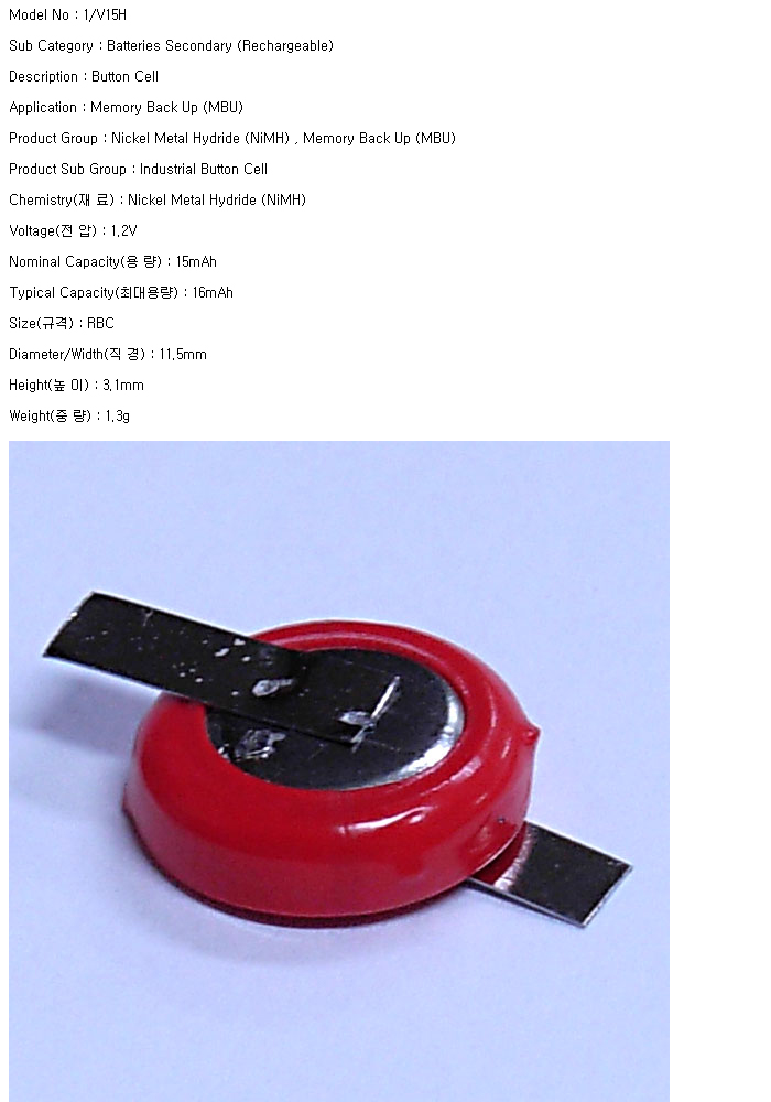 V15H-TT2(1.2V 15mAh)(ÁÖ¹®Á¦ÀÛǰ:±³È¯/¹Ýǰ Àý´ë ºÒ°¡´É!)