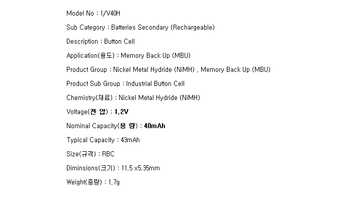 V40H(1.2V 40mAh)