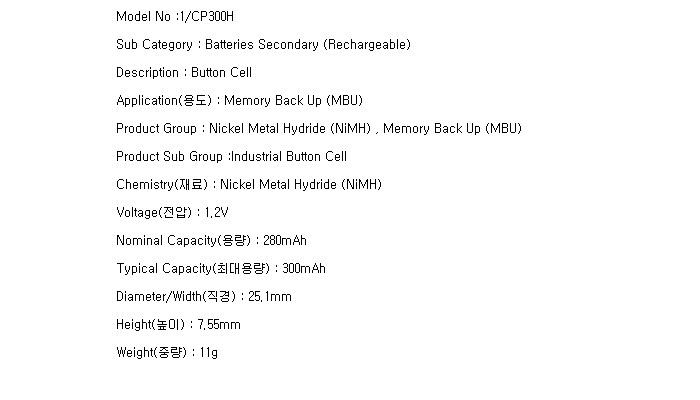 CP300H(1.2V 300mAh)