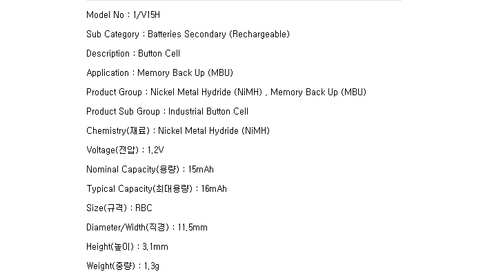 ¸ðµ¨¸í Varta V15H(1.2V)